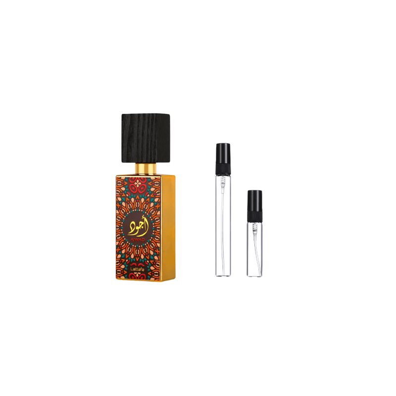Lattafa Ajwad es una fragancia unisex sumamente popular por su carácter dulce, gourmand y envolvente. Desde la salida, las notas frutales se combinan con vainilla y maderas, creando un acorde adictivo que recuerda a fragancias de lujo como Love Don’t Be Shy de Kilian, conocida por su dulzura cremosa y su toque avainillado irresistible. En el corazón, el almizcle blanco y las flores añaden un matiz elegante, mientras que en el fondo predominan la vainilla y el ámbar, otorgándole un secado cálido y seductor. Ajwad es ideal para quienes aman perfumes dulces, intensos y con excelente fijación, perfecto para noches románticas, citas especiales o simplemente para quienes desean sentirse rodeados de un aura acogedora y sofisticada. Con su relación calidad-precio imbatible, se ha convertido en uno de los favoritos de los amantes de perfumes árabes dulces con proyección destacada.